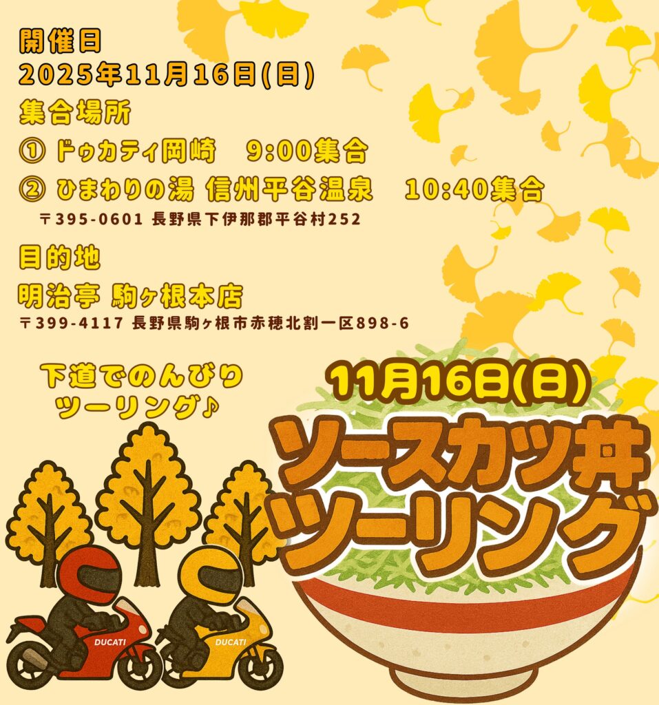 ということで「ソースカツ丼ツーリング」を開催いたします👏✨